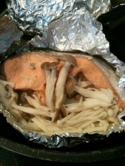 余った野菜炒め と半額トラウトサーモンでホイル焼き 味噌入れた 写真共有サイト フォト蔵